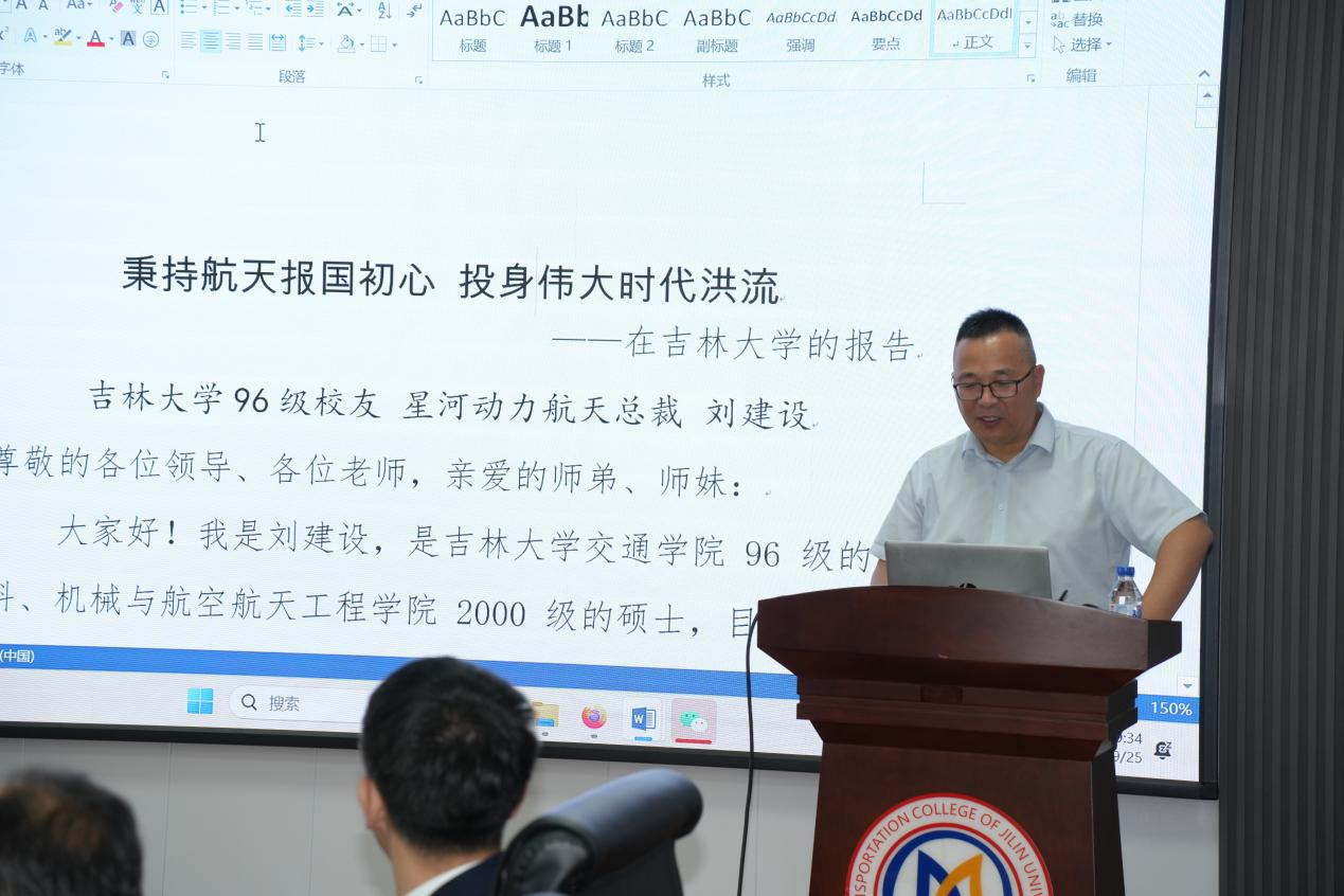 仪式结束后,刘建设校友为必赢线路检测3003本科及研究生代表做了《秉持航天报国初心,投身伟大时代洪流》励志报告,分享了学习、工作以及创建星河动力的历程,鼓励同学们心怀“国之大者”,既要夯实学业基础,又要以'钉钉子精神'提升自身能力,用青春汗水浇筑科技创新高原的基石,用专业所学支撑交通强国与航天强国建设的巍峨大厦!