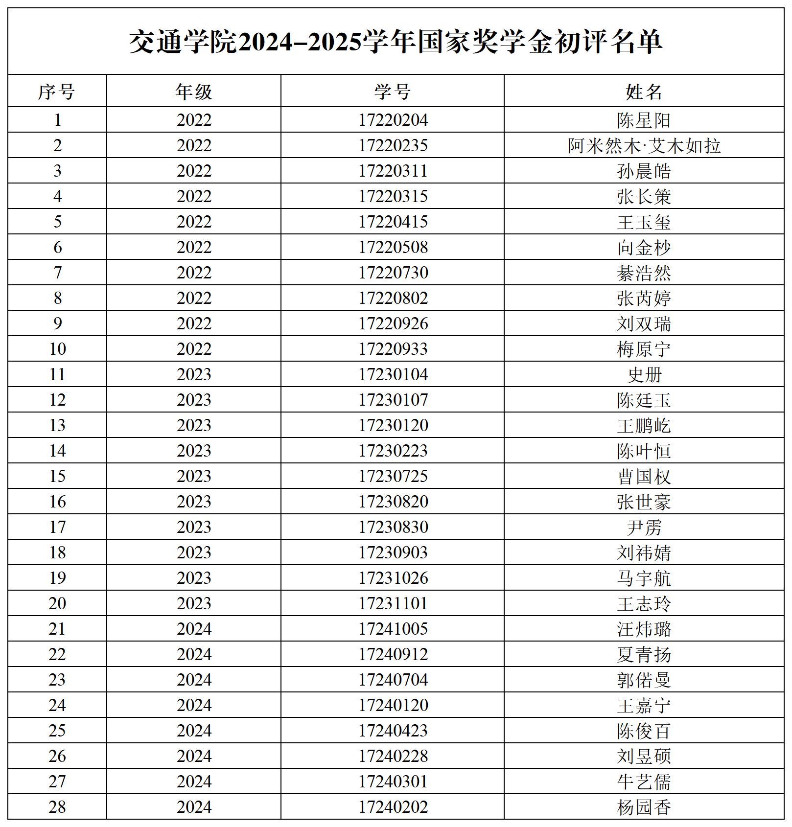 按照党委学生工作部《关于开展2024-2025学年必赢3003no1线路检测中心本科生国家奖学金评审工作的通知》相关要求,结合《必赢3003no1线路检测中心本科学生国家奖学金评审办法》(校发〔2020〕249号)有关规定,经学生个人申请、公开答辩,研究提出必赢线路检测3003国家奖学金初评结果。现将结果公示如下(按年级排序):